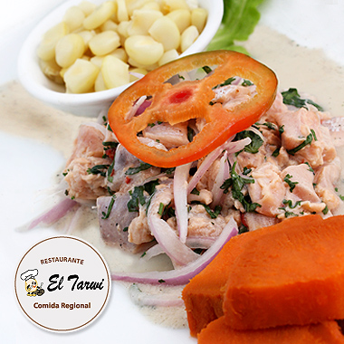Trozos de trucha fresca, ají limo, sal, limón y el toque especial del cheff.
