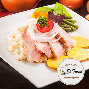 Plato típico de la sierra peruana, en base a tres carnes (pollo, res y chancho), acompañado con papas, camote, choclo, habas, tamal o humita.